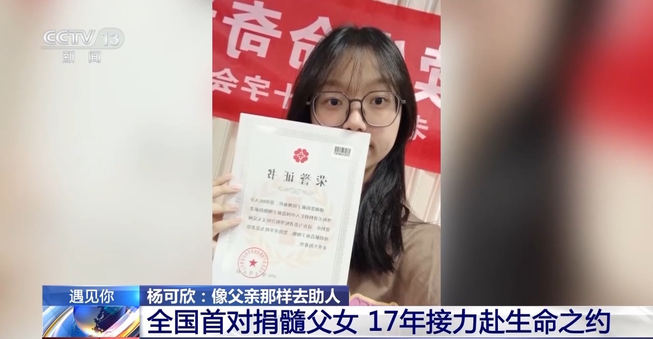 就像歌声里唱的,“遇见了你,是生命最好的事情。”17年父女接力捐献,是生命的约定,更是爱的传承;杨振亚夫妇同心坚守,用温暖种下了一颗善意的种子,在家庭的滋养下,女儿杨可欣,又用青春的坚持,让这颗种子不断生根发芽,健康生长。