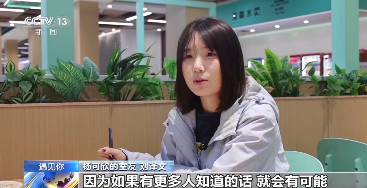 杨可欣的室友 刘译文:如果有更多人知道,就有可能有更多的人想要去了解,然后想要去捐献,愿意捐献的人多了,配型成功的概率就高了。
