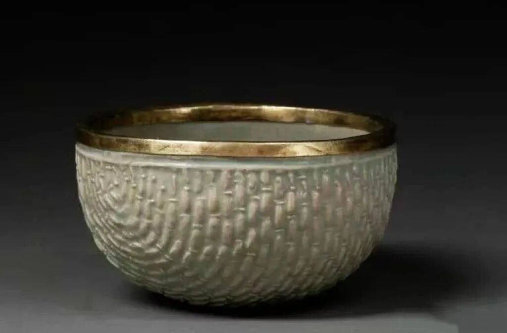 五代天青金釦柳条钵。来源/西安柴窑文化博物馆馆藏珍品